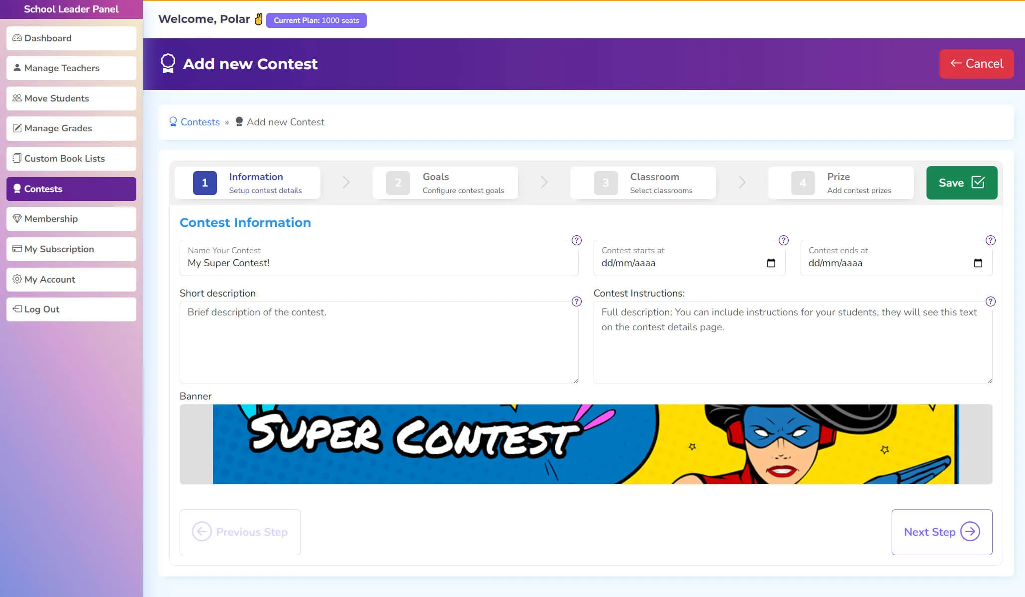 By setting a date range and defining the objectives, super users can foster a competitive and collaborative spirit across the entire school.